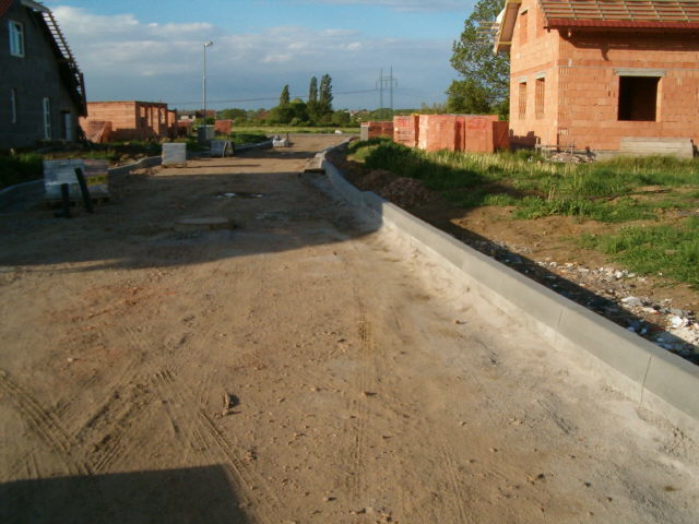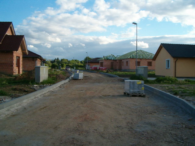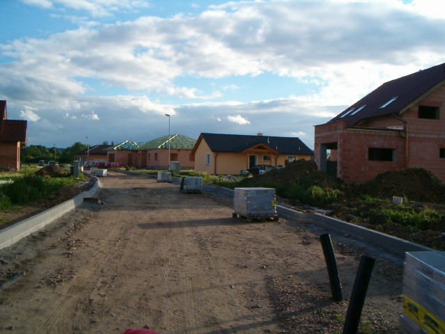 Zima je za námi, konečně je slušné počasí a práce na jednotlivých stavbách se opět rozběhly. Začala také výstavba posledních 3 domků. Pozadu není ani obec, která zahájila zavěrečnou fázi prací v této lokalitě. Jedná se o dobudování nové místní komunikace, "obratiště", chodníku, vjezdů k jednotlivým nemovitostem a osazení dopravními značkami. Doufáme, že vše půjde tak, jak máme naplánováno a budeme moci vše dokončit. Není to pouze na obci a zhotoviteli, vůle a vstřícnost je třeba také od jednotlivých stavebníků. Tak ať vše vyjde ! M.S.