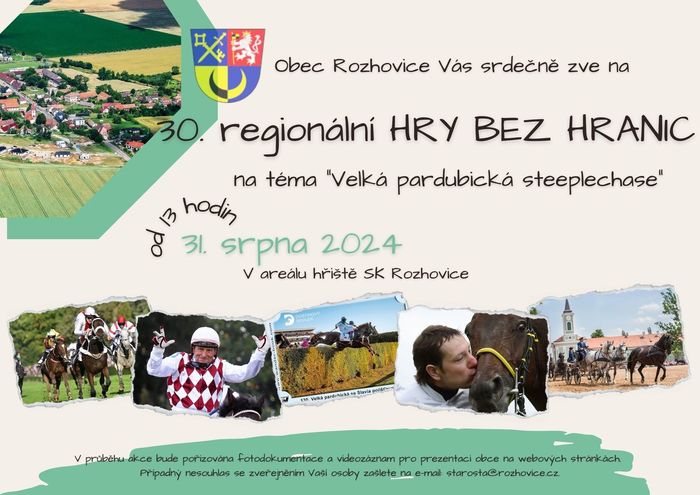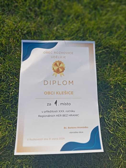Poslední srpnová sobota 31.08.2024 patřila již 30. ročníku netradičního setkání obcí při akci Hry bez hranic. Pořadatelem byla tentokrát obec Rozhovice, která se svého úkolu zhostila na výbornou. Změřit si své síly a dovednosti přijelo 10 týmů z obcí okresu Chrudim a Pardubice, včetně týmu z Klešic. Absolvovat pět připravených disciplín s tématem „Velká pardubická“ nebyla v horkém počasí vůbec žádná legrace. Ve 30. ročníku zvítězil k naší velké radosti klešický tým ve složení Lucka, Lukáš, Monika, Ondra, Petr a Petra. Patří jim velká gratulace a poděkování za vzornou reprezentaci naší obce – domů přivezli Putovní pohár i zlatý pohár. Škoda jen, že je nepřijelo povzbudit více klešických fanoušků. MSt