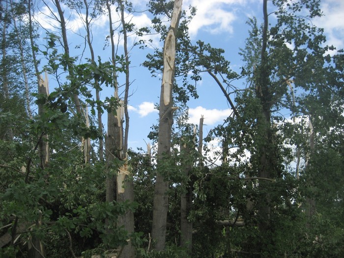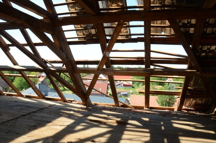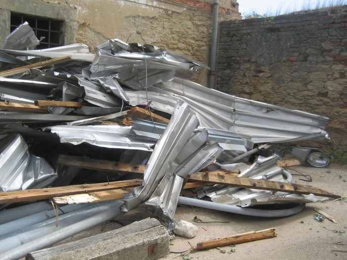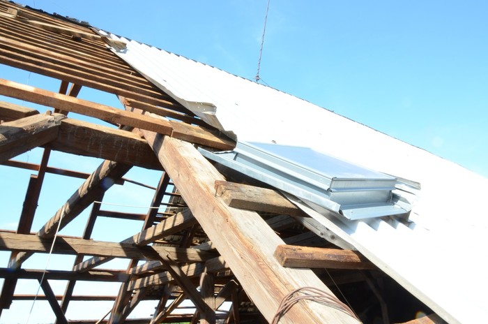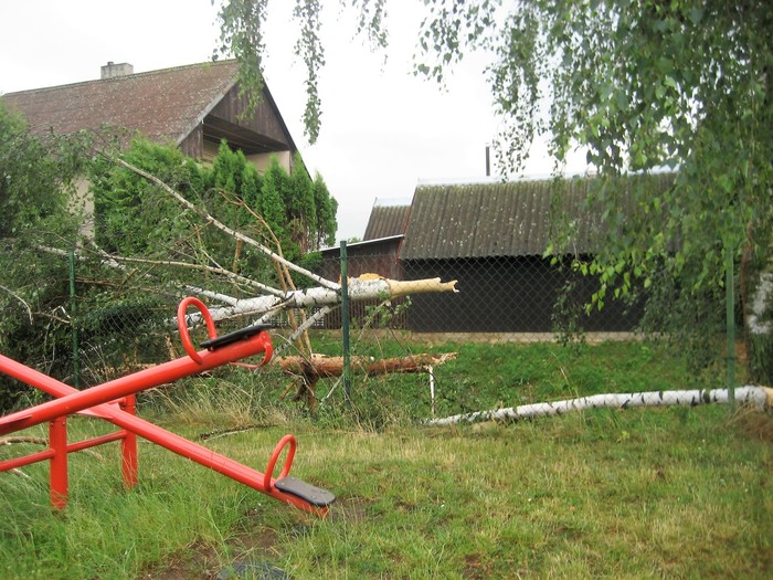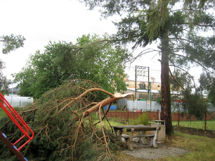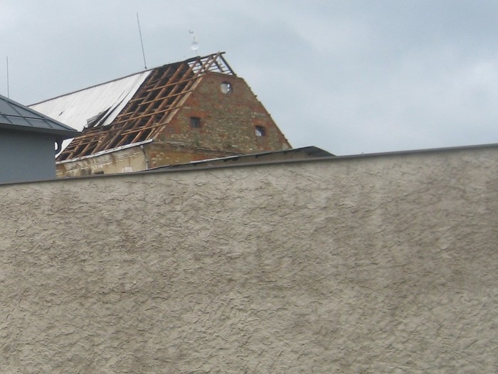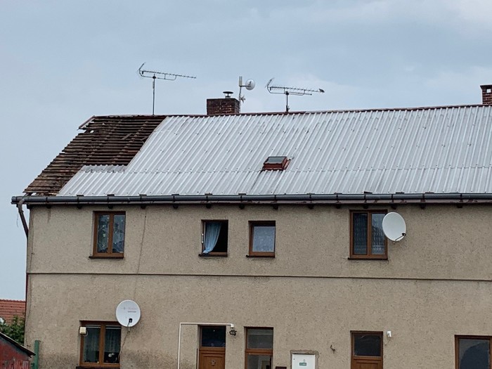 Při silném větru, který foukal téměř rovnoběžně s terénem, došlo k odtržení dvou střešních konstrukcí - na objektu s obecními byty a bývalé sýpky, částečně byla vytržena i konstrukce střešního krovu (trámy a latě).