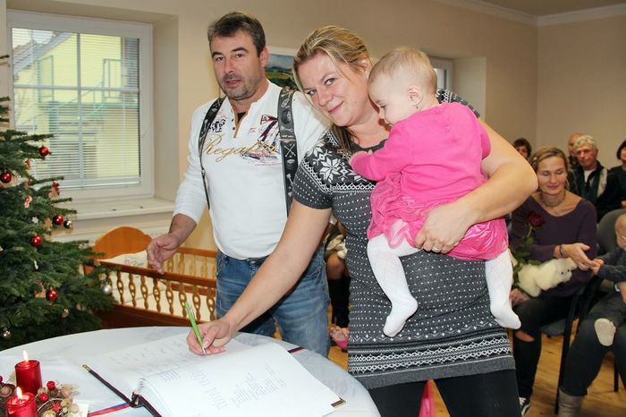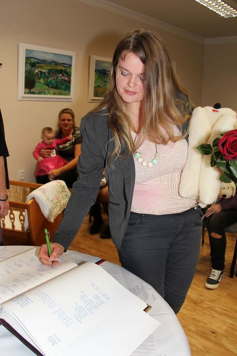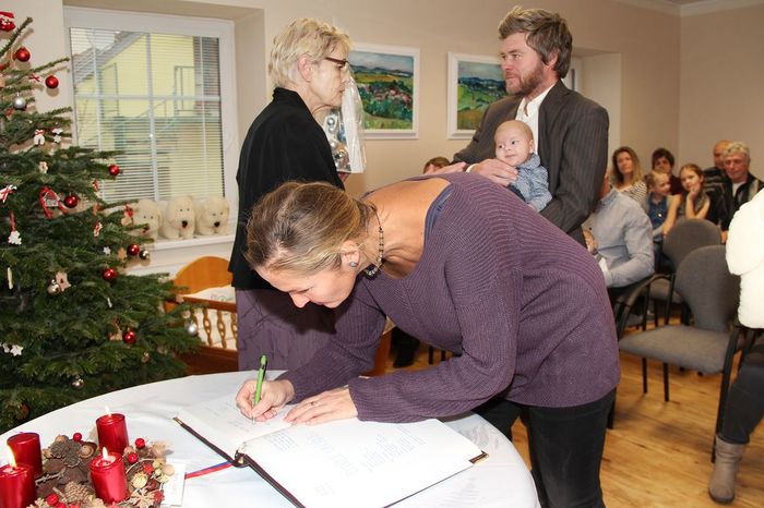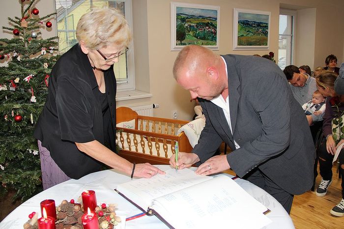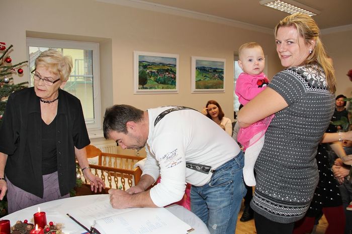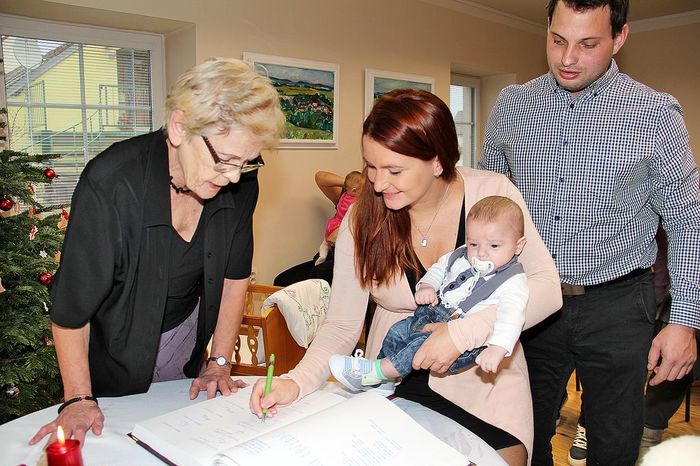 V poslední části dopoledního setkání se rodiče podepsali do Pamětní knihy obce, děti vyfotografovala paní fotografka v kolébce i se svými rodiči, sourozenci i příbuznými. Děti dostaly drobné dárky, maminky růži a vánoční ozdobu, děti pejska – polštářek z ovčí vlny.