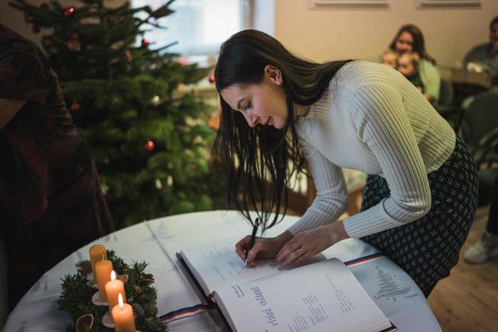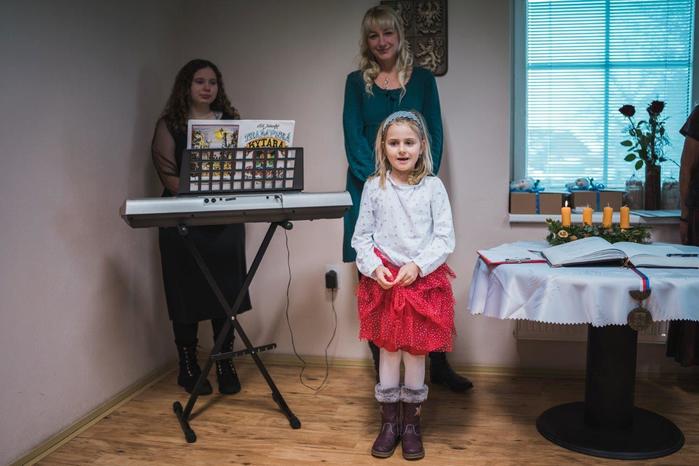 V poslední části dopoledního setkání se rodiče podepsali do Pamětní knihy obce a došlo také k fotografování dětí v kolébce i s rodiči, sourozenci i příbuznými. Děti dostaly drobné dárky, maminky růži a vánoční svícen.